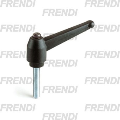 Manecilla / empuñadura graduable - Espiga roscada M10x150 - Largo rosca: 40 mm - Largo manecilla: 93 mm - Material poliamida reforzada - Espiga acero