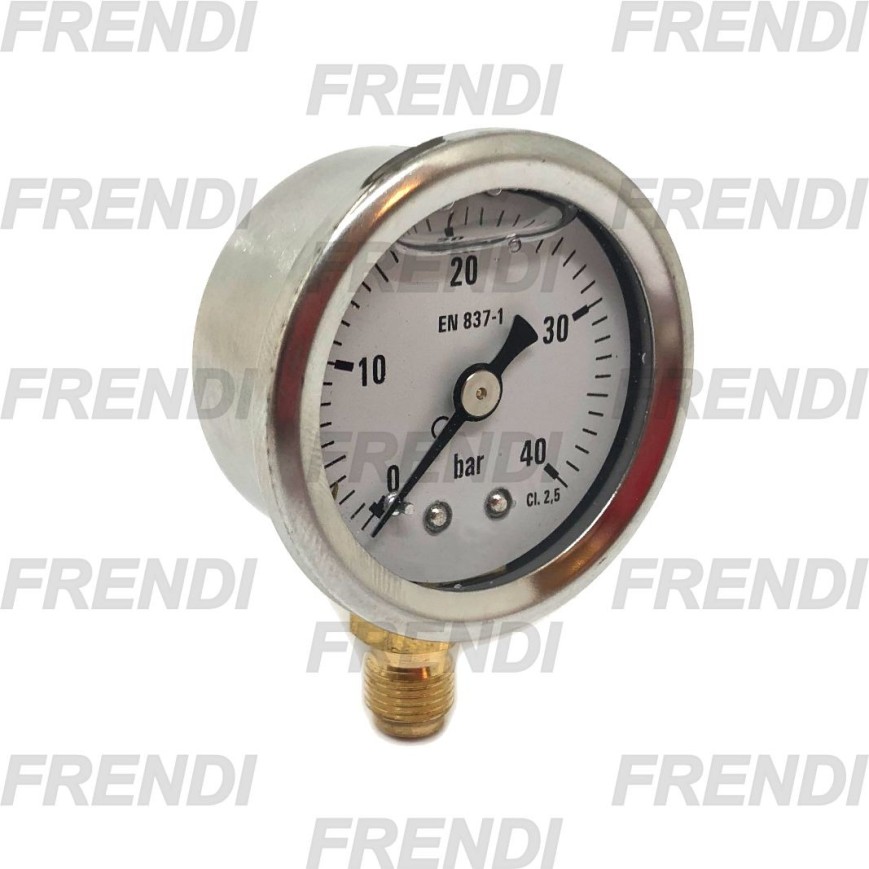 Manómetro diámetro 40 mm - Escala: 0-40 bar - Rosca 1/8 BSP - Carga de glicerina - Clase 2.5 - Caja acero inox - Mirilla plástico